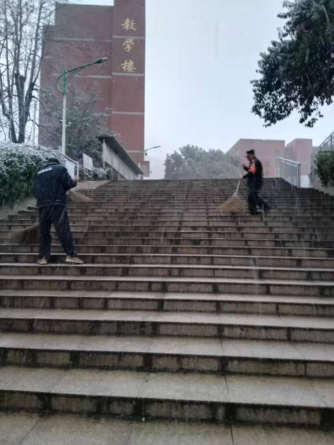 校園安全工作重在預(yù)防。剛進(jìn)入冬季,�?倓�(wù)處就對學(xué)校的所有設(shè)備、設(shè)施進(jìn)行了安全檢查。將水管、水表等易損設(shè)施做好了防凍處理,并提前購置了充足的人造防滑草墊。12月29日,降溫、雨雪到來時,我校的所有防范工作均已到位,同時安排物業(yè)的同志及時清掃臺階積雪,確保師生安全。