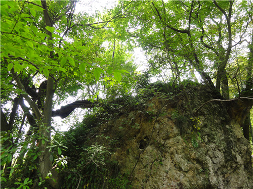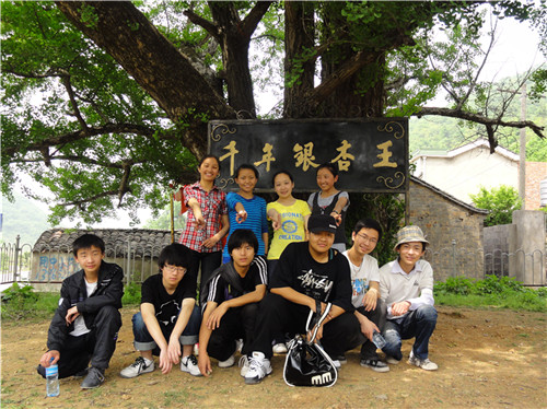 旅游大巴在座座青山中穿梭,路旁槐花似雪,秀木搖翠�?催^千年的銀杏樹,用過豐盛的午餐,別具特色的繆村展現(xiàn)在面前。千年紫藤,蒼干綠枝,盤根錯節(jié),上延外展,“蒙絡(luò)搖綴,參差披拂。”青瓦白墻的繆村人家,鑲嵌在山坳中。山村中泉水汩汩,籬笆邊山花灼灼。山腳,冬青王樹,亭亭如蓋;山上,修竹青筍,翠帶環(huán)腰;山尖,蒼天佳木,似與云齊:好一派和諧寧靜的山村風光。