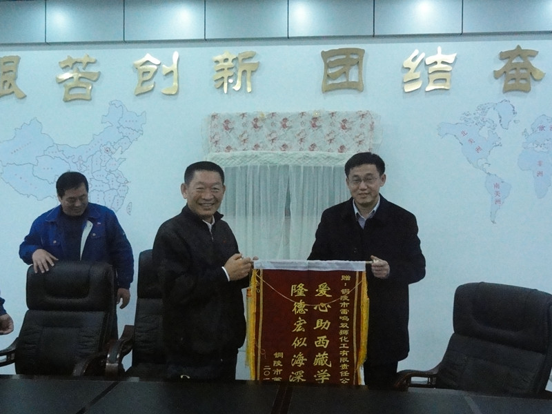 雷鳴公司會(huì)議室里,暖意融融。公司領(lǐng)導(dǎo)班子所有成員出席,公司閔總介紹了公司的發(fā)展情況,暢談了公司和五中的深厚的情誼。沐校長詳細(xì)地介紹了我校十多年來援藏教育的基本情況,展望我校援藏教育良好的發(fā)展前景,對(duì)雷鳴公司捐助我校西藏生棉被給予衷心的感謝,并贈(zèng)送了一面代表我校全體師生深深謝意的錦旗。