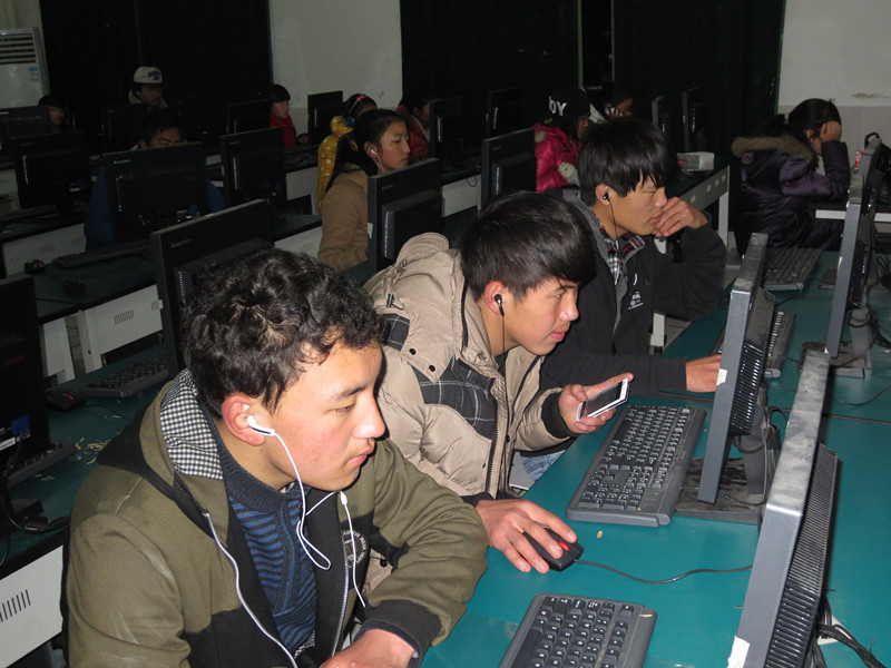 吃罷年夜飯,31名同學(xué)紛紛來到學(xué)校四樓機(jī)房,打開網(wǎng)絡(luò)看春晚,或跟家人、朋友及返藏的同學(xué)聊天,視頻,互報(bào)近況,互致問候。