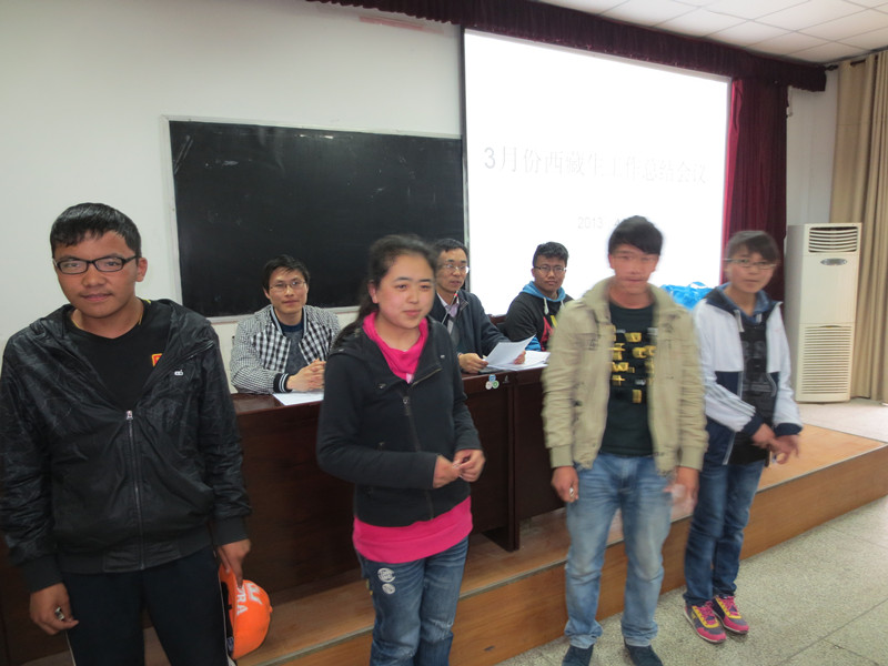 會(huì)上,西藏生工作處的吳老師、汪老師給被評(píng)為本月“優(yōu)秀宿舍”、“先進(jìn)個(gè)人”的同學(xué)頒發(fā)了獎(jiǎng)金。汪老師就清明節(jié)西藏生學(xué)習(xí)生活安排作了具體的解說,吳老師總結(jié)了三月份我校西藏生教育教學(xué)的八個(gè)方面主要工作,指出了工作中發(fā)現(xiàn)六個(gè)方面的問題,并針對(duì)這些問題對(duì)全體西藏生提出明確的要求:希望我校全體西藏生能夠有序、積極地生活和學(xué)習(xí)。