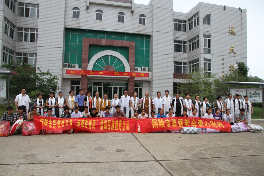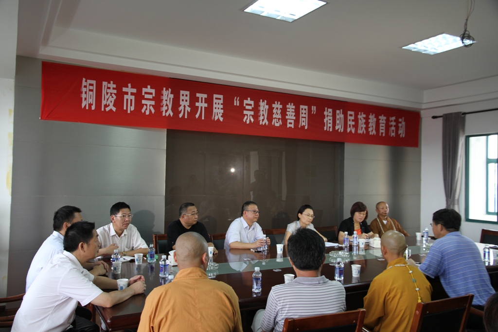 儀式結(jié)束后,學(xué)校負責(zé)人沐揚給各位領(lǐng)導(dǎo)及宗教界愛心人士介紹了我校11年來援藏教育的基本情況,匯報了學(xué)校近年來教育管理新舉措及今年中高考等教學(xué)成果。市教育局局長李勇代表市教育局對宗教界愛心人士對我校援藏教育的大力支持表示了衷心的感謝。最后,市委常委、統(tǒng)戰(zhàn)部部長王煒對我校援藏教育給予充分的肯定,對銅陵宗教界的這一善舉給予高度的贊揚,并希望我校的援藏教育事業(yè)再上臺階,再創(chuàng)輝煌。