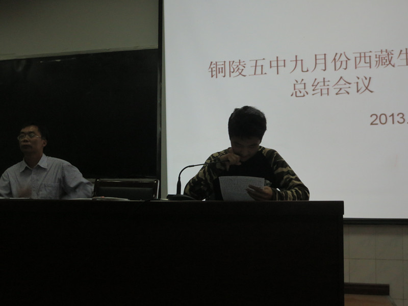 會上,西藏生工作處吳成兵老師總結了九月份西藏生工作,指出工作中發(fā)現(xiàn)的問題。楊書記為獲得本月“優(yōu)秀宿舍”“先進個人”的同學頒發(fā)了獎金,政教處周仁林副主任宣讀了學校對個別西藏生教育管理決定。西藏生工作處汪之廣老師,就國慶西藏生學習、生活安排做了詳細的說明。最后楊書記語重心長地對全體西藏生提出三點要求:明確目的,擺正位置,懂得感恩。