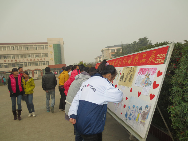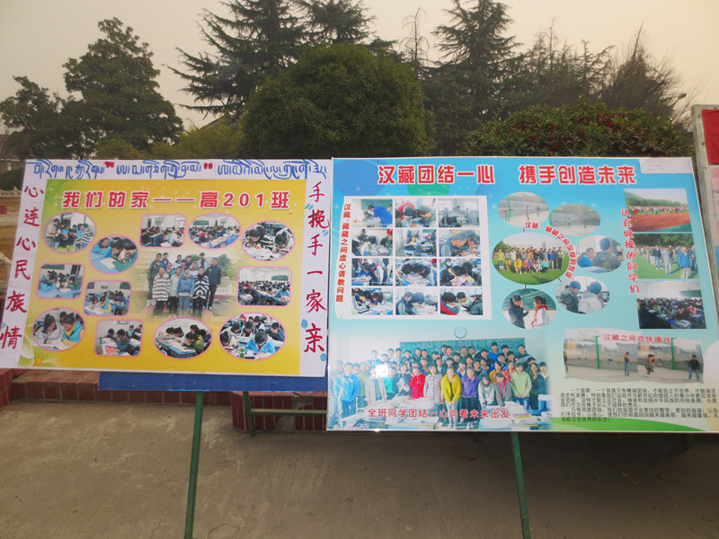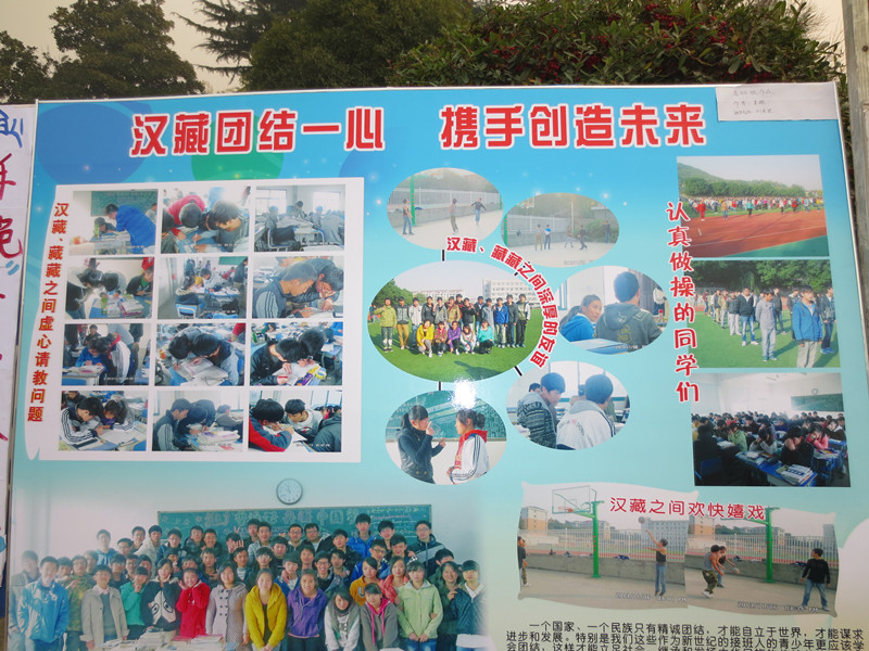 盡管天氣有些陰沉,盡管功課比較緊張,同學(xué)們利用下課時(shí)間也要看看展板。找到自己的作品了,找到同學(xué)的作品了,找到班級(jí)的照片了,找到同桌西藏生的照片了�;貞浿髌诽N(yùn)含的一段段歷史,訴說作品記載的一個(gè)個(gè)故事。指指點(diǎn)點(diǎn),評(píng)頭論足,說說笑笑,其樂融融,和諧的氣氛在校園里凝聚,團(tuán)結(jié)的氛圍在校園里洋溢。