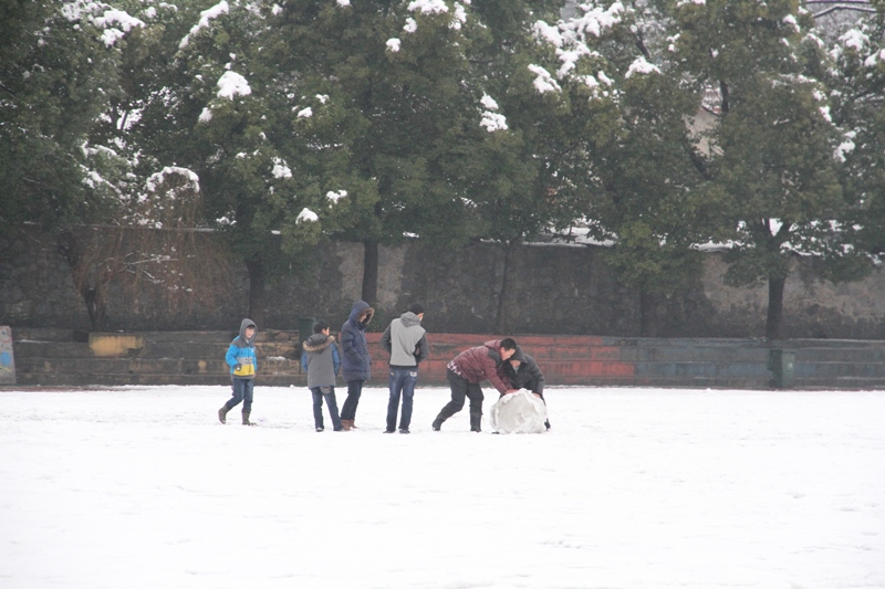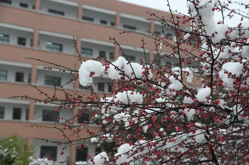 “忽如一夜春風(fēng)來,千樹萬樹梨花開�!�2月18日,忽如其來的一場春雪將五中校園裝點成了冰雪世界,皚皚白雪壓枝頭,銀裝素裹,分外妖嬈,為美麗的五中校園更增添了幾分秀麗姿色。最興奮的還是學(xué)生,他們在操場上追逐,在雪堆里打滾,盡情享受著這場大雪帶給他們的歡樂。春雪來了,春天也該不遠(yuǎn)了!