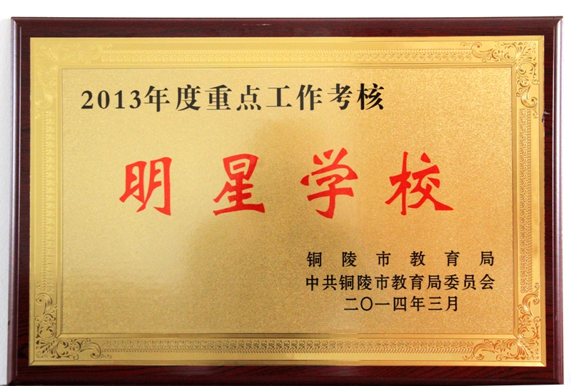 在剛剛結(jié)束的2014年全市教育工作會(huì)議上,我校喜獲市教育局2013年度重點(diǎn)工作考核“明星學(xué)校”榮譽(yù)稱號(hào)!