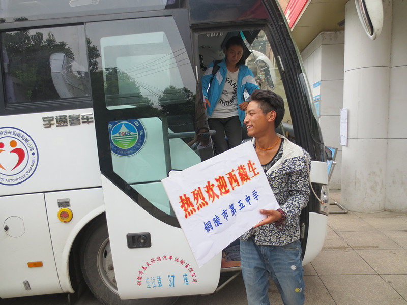 西藏生工作處吳成兵老師、汪之廣老師,和銅陵大巴的師傅紛紛幫忙,安置行李,安排座位,發(fā)放飲料,親切問候。兩個(gè)多小時(shí)的車程,很快就到獅子山腳下。楊書記等學(xué)校領(lǐng)導(dǎo)及工作人員熱情迎接這批昌都籍西藏生。