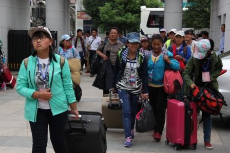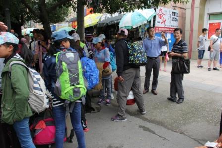 9月2日12時許,五中門前非常熱鬧,學校用兩輛大客車從南京接來乘火車從拉薩到南京的藏族高一新生和高二學生,一時間校園內人聲鼎沸,學生和家長們一齊動手拿行李一路走一路是笑聲,大家高高興興地走進宿舍、走向餐廳。按照規(guī)定,9月3日全校正式上課。