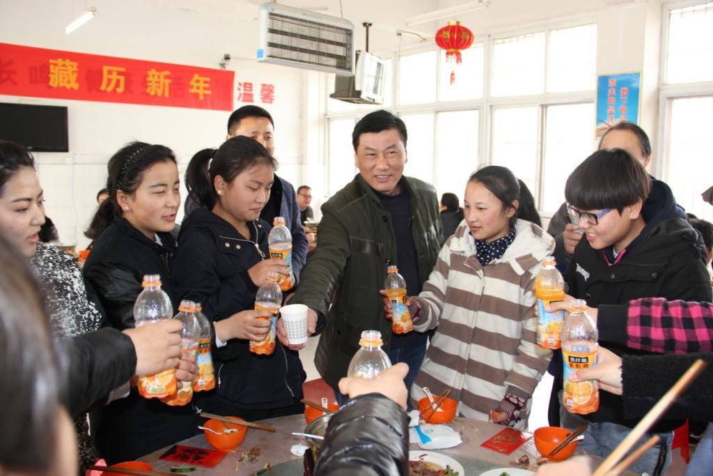 中午,李局長與藏班學(xué)生和援藏教師聚餐聯(lián)歡,并給大家派發(fā)了紅包和牛奶,熱情禮貌的藏班學(xué)生也獻上吉祥的哈達,載歌載舞,將美好的祝福送給李局長,也表達了他們對市政府及社會各界人士給與關(guān)懷的感激之情。