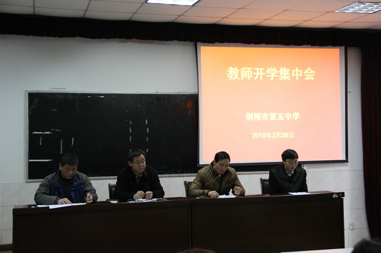 會上,學(xué)校黨支部書記、校長沐揚同志代表班子成員首先為全校教職工送上了新學(xué)期的祝福。隨后班子成員根據(jù)分工逐一對2014年的工作情況進行了總結(jié),將2015年的工作計劃向全體教職工作了通報,并就開學(xué)工作進行了細致的部署。最后,沐校長就新學(xué)期的工作給全體教職工提出了希望,希望全體教職工同心同德,一切工作以推動學(xué)校發(fā)展為中心,多提寶貴意見,加強學(xué)習(xí),提高自身素質(zhì),進一步加強師德修養(yǎng),嚴格要求自己,堅決抵制有償家教。號召大家為實現(xiàn)共同的五中夢努力奮斗!