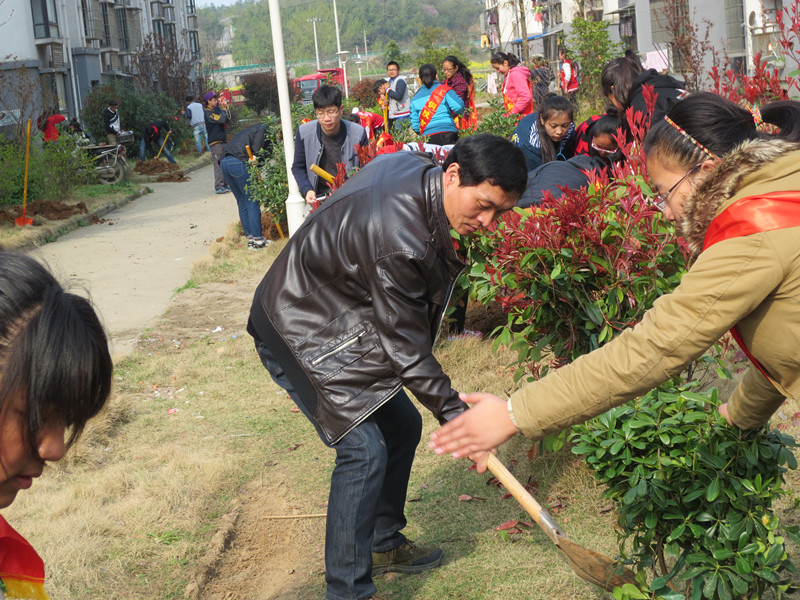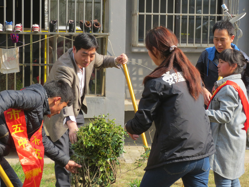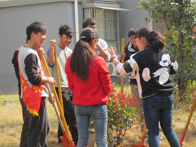 早早地起床,快快地吃飯,坐上去大通古鎮(zhèn)的大巴。晴天麗日,江南春早,菜花鋪金,佳木吐綠,髻山秀拔,溪水渙渙,柳風(fēng)輕拂,春燕呢喃。大巴車風(fēng)馳電掣,孩子們歡聲笑語(yǔ)。戴上志愿者綬帶,拿起準(zhǔn)備好的鐵鍬,刨坑、放苗、填土、扶苗、踩實(shí),道道工序,孩子們做得仔仔細(xì)細(xì)。男女搭配,干活不累。團(tuán)市委方書記、侯部長(zhǎng)、我校楊書記、團(tuán)委王海寶老師、西藏生工作處的吳成兵老師都和學(xué)生一起勞動(dòng),并傳授栽樹經(jīng)驗(yàn)。