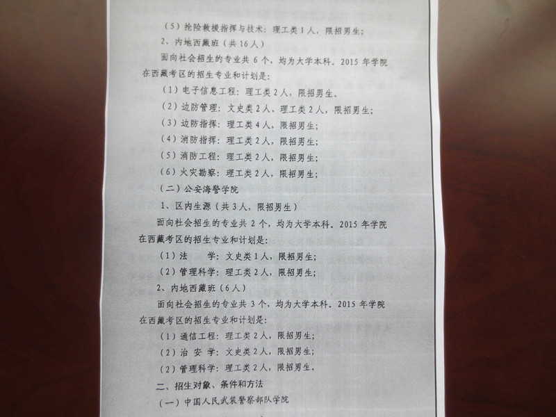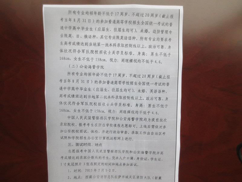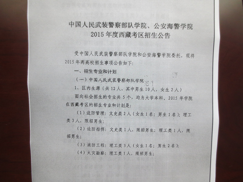 中國人民武警部隊(duì)學(xué)院、公安海警學(xué)院2015年西藏考區(qū)招生公告