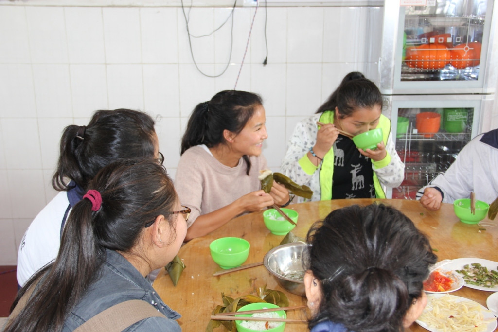 “ 疏疏數(shù)點黃梅雨,殊方又逢重五。角黍包金,草蒲泛玉,風(fēng)物依然荊楚----” 宋人楊無咎的一闋《齊天樂》寫盡江南端午的風(fēng)物。一角角米粽、一塊塊豆糕,香甜可口。送的是民族的情、領(lǐng)導(dǎo)的愛心 ;吃的是暖暖的意、濃濃的感激。正在接受采訪的高206班學(xué)生格桑卓嘎說:“每到節(jié)日,西藏生都會想家。但是每到節(jié)日,學(xué)校、各級領(lǐng)導(dǎo)都不會忘記遠在銅陵求學(xué)的我們這些西藏生,都會讓我們感受到家的溫暖。粽子好吃,綠豆糕很甜,感謝銅霞社區(qū)的領(lǐng)導(dǎo)!”