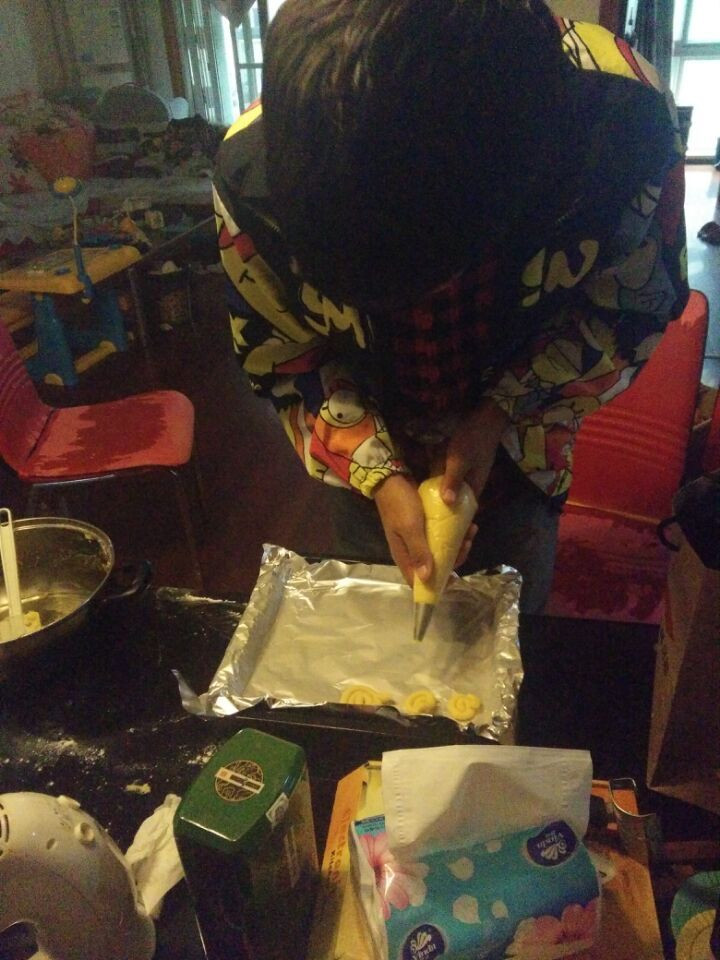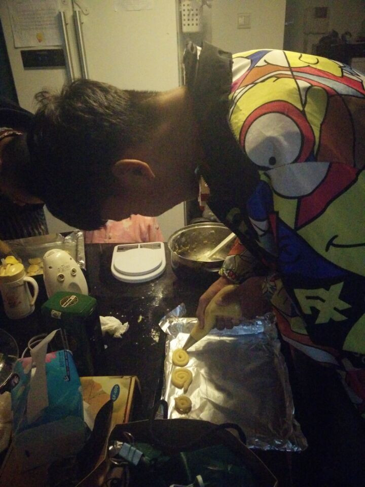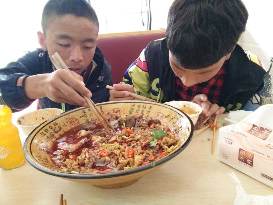 去年我和鮑陵與多杰次仁、旦增桑珠結(jié)對(duì)子。今年桑珠以優(yōu)異的成績(jī)考進(jìn)同濟(jì)大學(xué),于是今年我們又與高一的四郎尼瑪結(jié)了對(duì)子。四郎是我和鮑陵自己班上的學(xué)生,如果我們和他正兒八經(jīng)地坐下談心聊天,他會(huì)非常拘束,所以我們帶上他和多杰一起吃飯,在比較輕松的氛圍中了解他的學(xué)習(xí)生活情況。我們有時(shí)也帶他們?nèi)ワ埖辏酝觑�,一起去看看電影,看完還可以互相交流一下觀后感。有時(shí)帶他們回家,一起包包子,做西點(diǎn)。在烘焙的過(guò)程中嘮嘮家常、談?wù)勆�、聊聊未�?lái)。多杰去年剛來(lái)時(shí)感覺(jué)很內(nèi)向,話很少。不過(guò)今年感覺(jué)人開(kāi)朗多了,烘焙時(shí),主動(dòng)承擔(dān)起打發(fā)的工作。而且多杰去年剛來(lái)時(shí),為了給他改善伙食,我燒了一桌子葷菜,結(jié)果發(fā)現(xiàn)他竟然不吃,一問(wèn)之下才知道他只吃素食。所以后來(lái)每次帶他吃飯時(shí),我們就點(diǎn)些他喜歡的蔬菜。我經(jīng)常和鮑陵說(shuō),這孩子正處在長(zhǎng)身體的時(shí)候,不能只吃蔬菜啊,這對(duì)他身體不好啊。今年這種情形也有了改觀,他開(kāi)始愿意吃雞肉了,我這才稍稍放心。