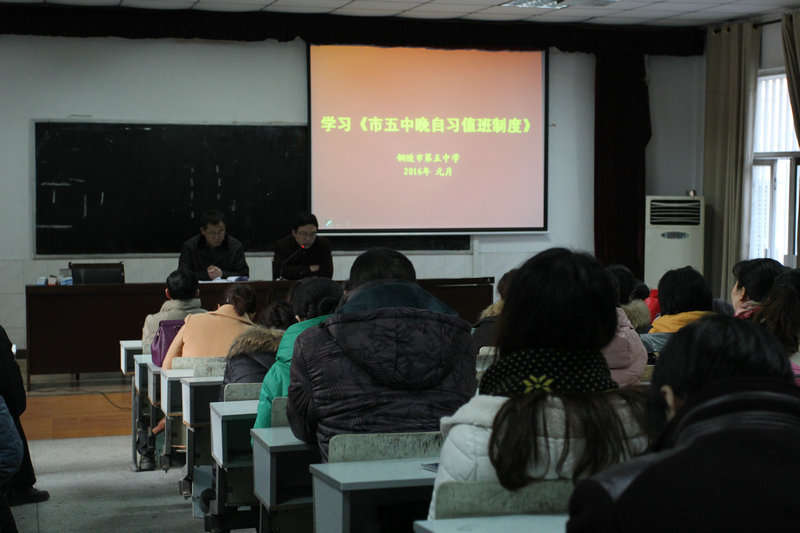 近日,我校召開全體教職工會議,集中學習學校新修訂的晚自習值班管理制度。校黨支部書記、校長沐揚同志主持會議。