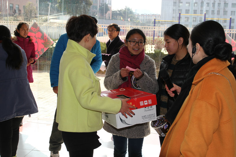 最后,每個同學都根據(jù)自己參與游戲獲得的積分得到了獎品。高一年級的四郎尼瑪高興的說:“英語趣味游戲活動既豐富我們的假期生活,給我們帶來了快樂,還提升了大家對英語的興趣。感謝老師們的用心良苦,這是我到五中以來過的最有意義的除夕!”