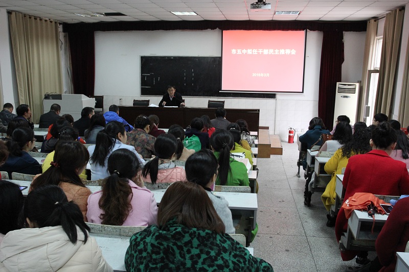 為推進學(xué)校管理工作規(guī)范化發(fā)展,根據(jù)市教育局黨委關(guān)于學(xué)校擬任干部民主推薦工作的相關(guān)要求,3月18日下午第四節(jié)課,我校在階梯教室開展擬任干部人選民主推薦活動,推薦學(xué)校團委副書記崗位人選�;顒佑蓪W(xué)校黨支部書記、校長沐揚主持,全體教職工參加此次推薦活動。