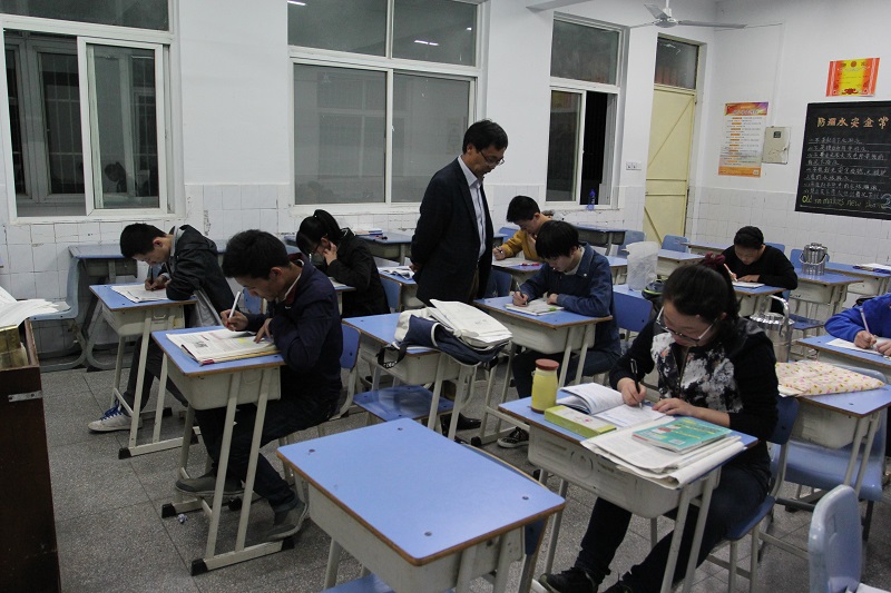 高三語文教師吳成兵輔導(dǎo)的學(xué)生很多是住校的西藏生和本地生,本學(xué)期以來,他們每天晚上都會來到吳老師指定的教室上自習(xí)。每晚七點整,吳成兵老師會準(zhǔn)時來到逸夫樓的這間教室里,督促大家學(xué)習(xí)。他時而端坐在講臺前,觀察學(xué)生的學(xué)習(xí)狀態(tài);時而踱步于教室里,檢查學(xué)生的學(xué)習(xí)成效。當(dāng)學(xué)生精神不集中、學(xué)習(xí)效率不高時,吳老師會主動上前詢問提醒。學(xué)生在自習(xí)過程中,如果有語文方面的問題,或者其他的困惑,吳老師都會當(dāng)場為其悉心答疑解惑。