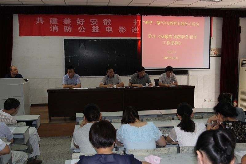 市五中組織學習《安徽省預(yù)防職務(wù)犯罪工作條例》