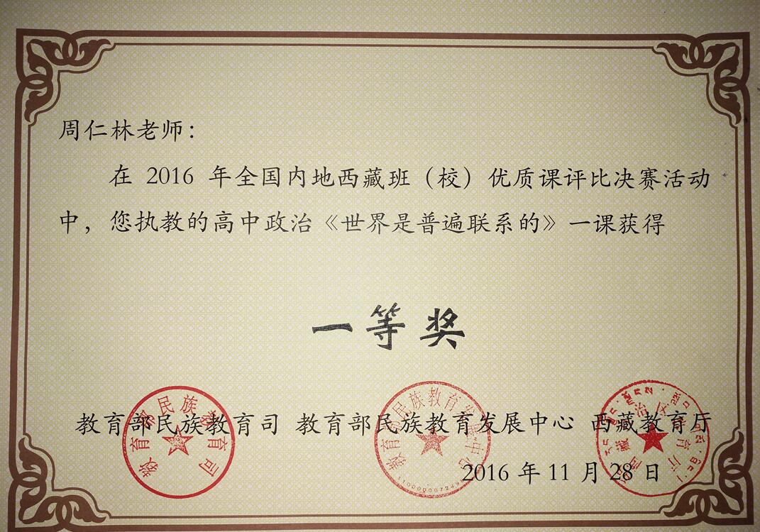 2016年內地西藏班(校)教師優(yōu)質課和論文大賽中,我校取得優(yōu)異成績。周仁林老師獲得優(yōu)質課全國一等獎。有8位老師論文獲得國家級獎,名單如下:一等獎:薛乾乾、盛麗;二等獎:張勝利、陳嘉文;三等獎:任翔、高彪、柯志強、任娟。