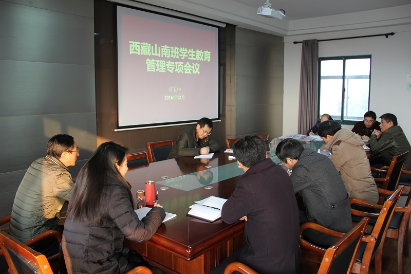 轉(zhuǎn)眼期末已至,我校西藏山南代培班開班已有四個(gè)月時(shí)間,為了進(jìn)一步總結(jié)前期西藏山南班學(xué)生的教育管理經(jīng)驗(yàn),提早謀劃2017年西藏山南班學(xué)生教育管理工作,近日,市五中在學(xué)校小會(huì)議室召開西藏山南班學(xué)生教育管理工作專項(xiàng)會(huì)議,學(xué)校班子全體成員、政教處及西藏生工作處負(fù)責(zé)人、藏語生活老師和山南班班主任參加了會(huì)議,會(huì)議由市五中黨支部書記、校長沐揚(yáng)主持。