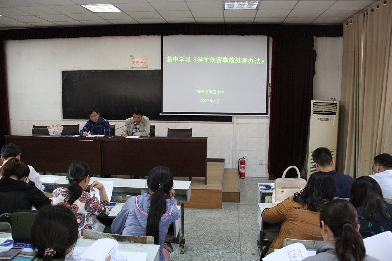 為提高學校職工的法治觀念和法律素養(yǎng),努力提升依法行政、依法治教、依法治校的能力和水平,創(chuàng)設良好的校園法治環(huán)境,我校扎實開展教師法制宣傳教育。近日,在市五中教職工大會會前學法活動中,學校黨支部副書記楊克貴帶領全體教職工學習《學生傷害事故處理辦法》。