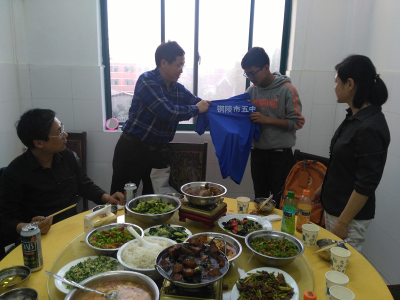 沐校長和夫人請結(jié)對子西藏生吃飯、送球衣