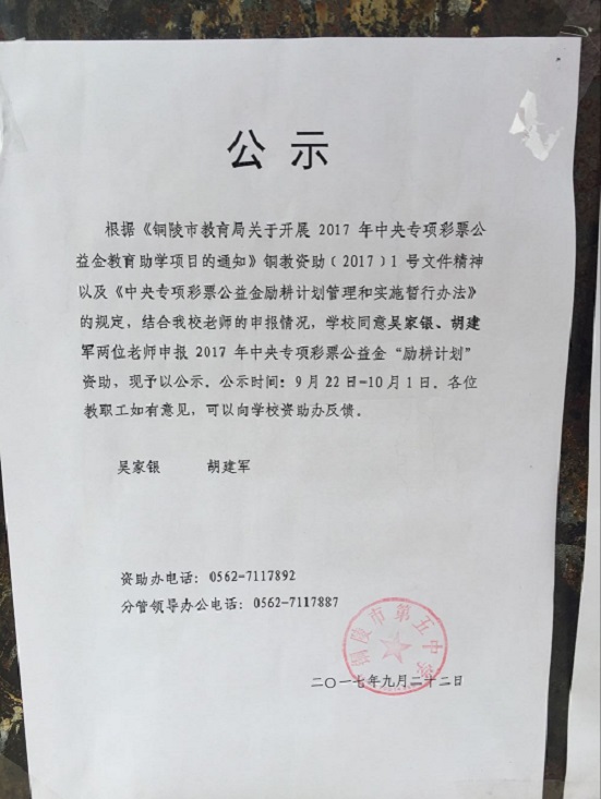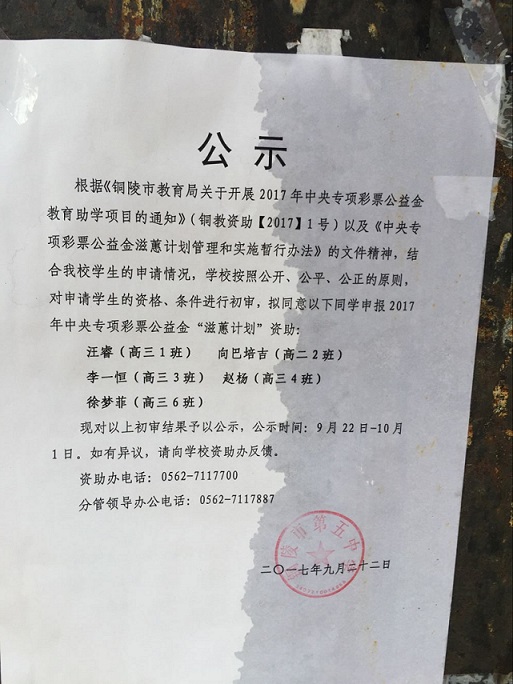 國(guó)家助學(xué)金名單公示