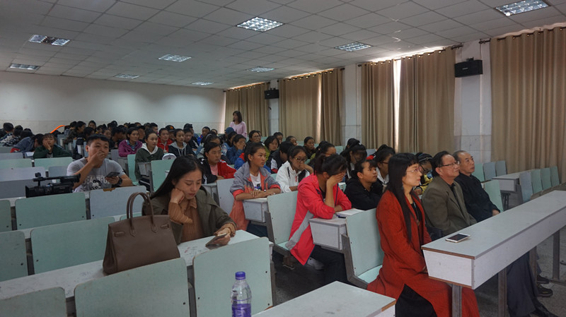 主講人楊亞珍老師,從多角度闡述自己作為一名人民教師的快樂。娓娓地?cái)⑹鲋�,滲透著對(duì)祖國的摯愛、對(duì)工作的厚愛、對(duì)學(xué)生的關(guān)愛。受到在場(chǎng)的所有西藏生的熱烈歡迎。