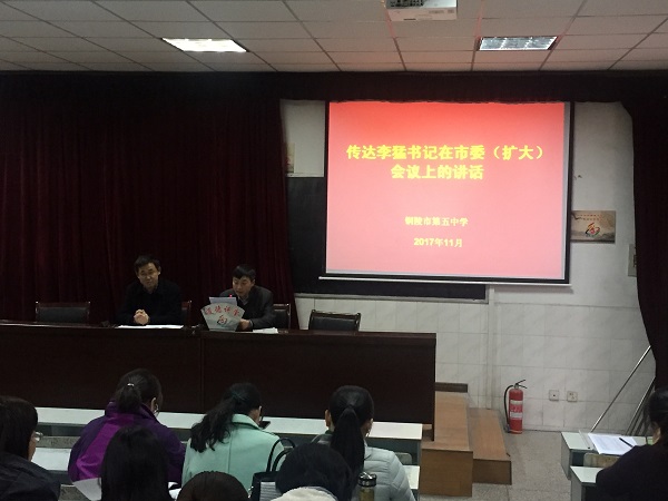 11月24日下午,我校在階梯教室召開教職工會議,開展全員集中學習活動,學校黨支部書記、校長沐揚主持學習活動。