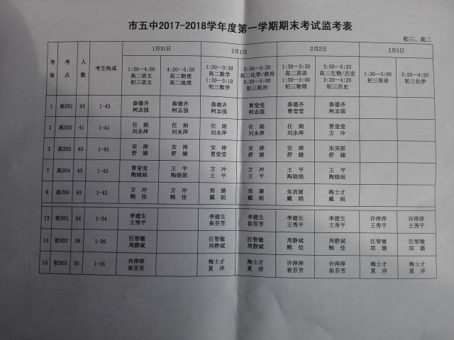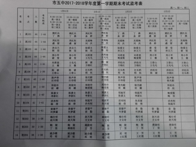 6、監(jiān)考、閱卷人員安排:見監(jiān)考表、閱卷表