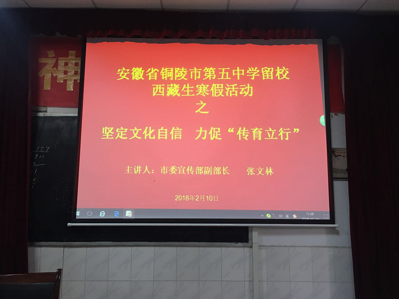 2月10日,我校邀請(qǐng)到了銅陵市委宣傳部副部長(zhǎng)張文林給我校全體留校藏生舉辦“堅(jiān)定文化自信,力促傳育立行”的專(zhuān)題講座。