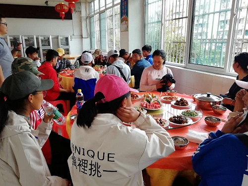 旅途勞頓,學(xué)校早已準(zhǔn)備好豐盛的午餐為孩子們緩解饑餓和疲勞