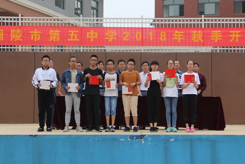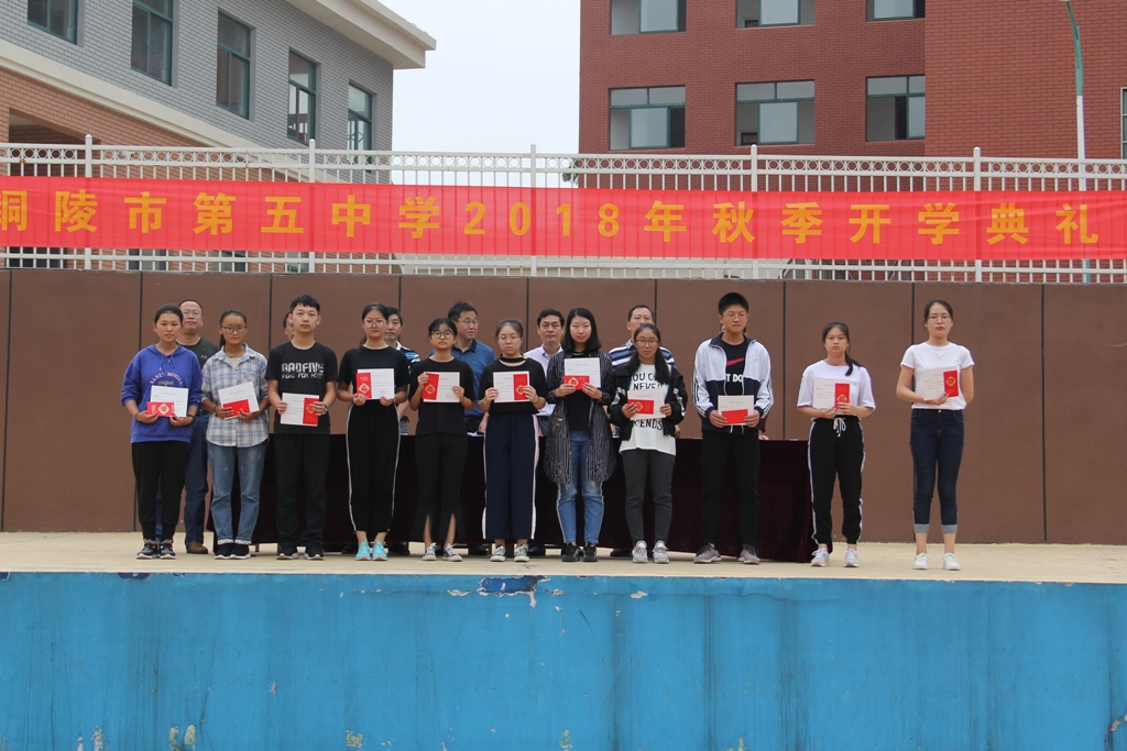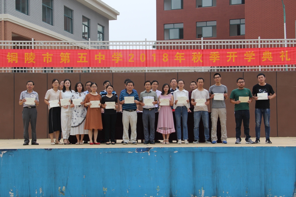 開學典禮由校黨支部副書記楊克貴主持。楊克貴副書記代表全體師生對剛進入我校的新老師和新學生,尤其是77名高一西藏生表示歡迎,并和大家一起回顧了過去的一學年里,在全體師生的共同努力下,學校發(fā)展的歷程和取得的可喜成績。接著,校黨支部副書記楊克貴、行政副校長汪鶴來和教務處主任呂建國分別宣讀了2017-2018學年集體、教師和學生的獲獎情況。在過去的一學年里,學校被評為銅陵市“明星學校”,西藏生工作處獲“銅陵好人”稱號等;教師64人次獲市級以上獎,學生51人次獲市級以上獎。隨后,學校舉行了頒獎典禮,對表現(xiàn)優(yōu)異的集體和個人給予獎勵。教師舒婷和學生周爽分別代表全體師生作了發(fā)言,表了決心。