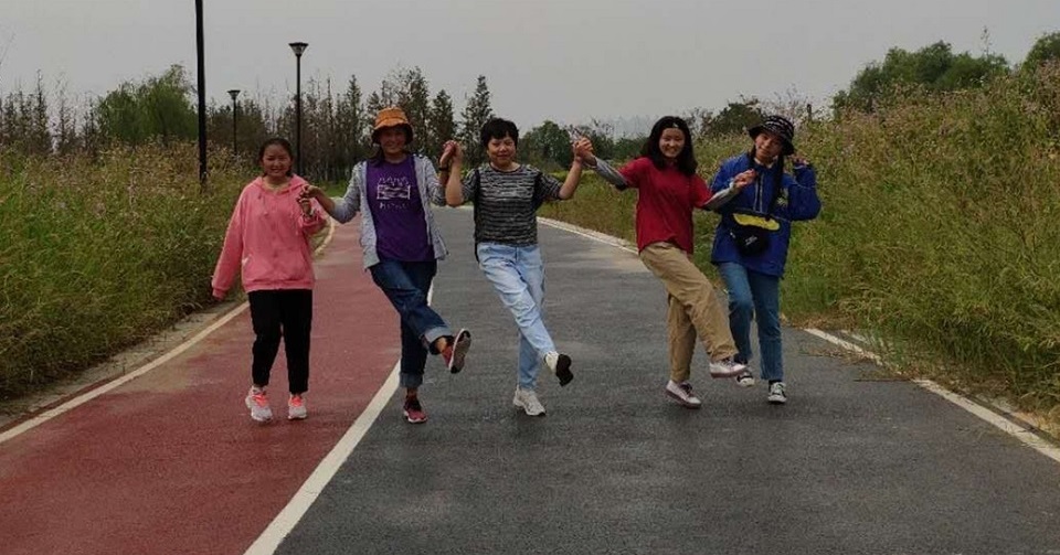 崔芬芳、柯志強老師與結對藏生次仁拉姆、白瑪曲珍、強巴旺姆、尼瑪偉措中秋共游西湖濕地公園,中午師生同聚暢談學習和生活。