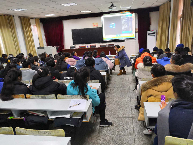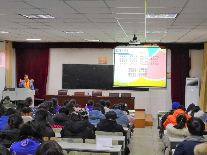 學(xué)校聘請(qǐng)了銅陵市教研室音樂(lè)教研員,銅陵市音樂(lè)教育專家吳勵(lì)為150名留校西藏生開講。吳老師 先從春晚開始導(dǎo)入,重點(diǎn)引導(dǎo)聽講座的西藏生鑒賞年年央視春晚中開場(chǎng)音樂(lè)《春節(jié)序曲》。作者、《春節(jié)序曲》內(nèi)容、,秧歌簡(jiǎn)介、樂(lè)隊(duì)編制一一簡(jiǎn)介之后,吳老師從《春節(jié)序曲》的三個(gè)部分一一帶同學(xué)們進(jìn)行鑒賞,時(shí)時(shí)插入有關(guān)音樂(lè)知識(shí)、背景介紹、藏族歌舞類比,并教唱西藏生兩段歌曲“春天來(lái)了,大河報(bào)曉。冰雪化了,魚躍波濤。春雨瀟瀟,萬(wàn)物生長(zhǎng)。夢(mèng)在春天,登高望遠(yuǎn)------”傾聽中,學(xué)唱中,擊打節(jié)拍中,男女對(duì)唱中,近兩個(gè)小時(shí)的學(xué)習(xí)匆匆過(guò)去,真想把這美好的春天留住,真渴望把這美好的課堂延續(xù)-------