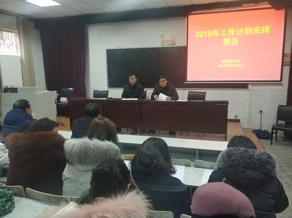 隨后,校黨支部副書記楊克貴、副校長汪鶴來、副校長呂建國、工會主席瞿大寨分別就各自分管的工作,向全體教職工報告了2019年工作計劃安排。
