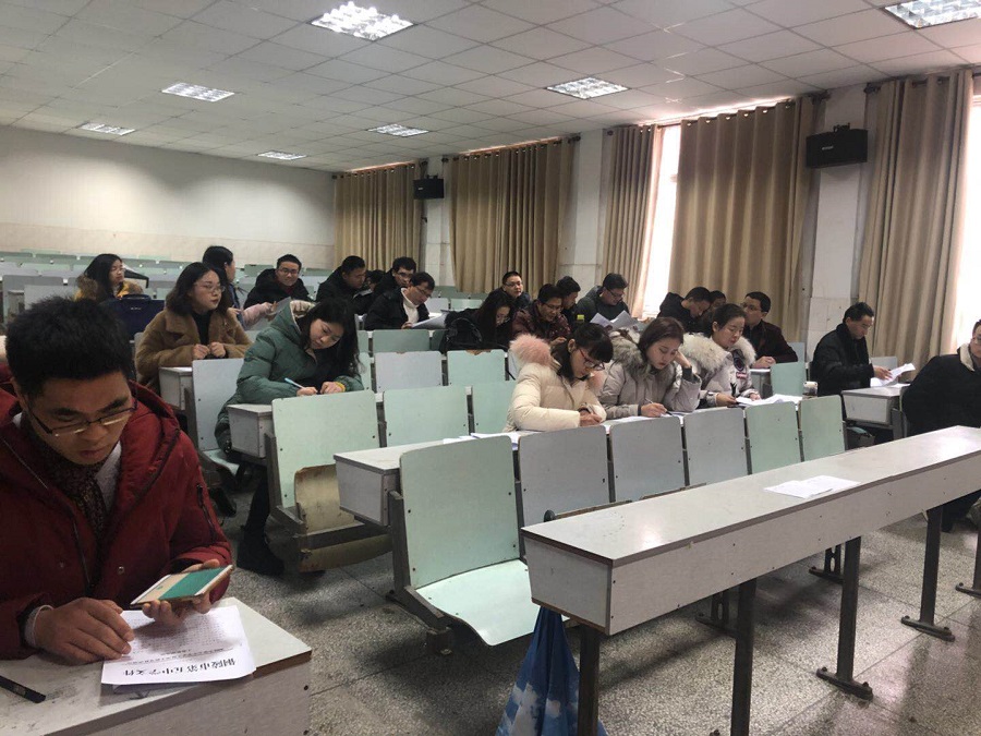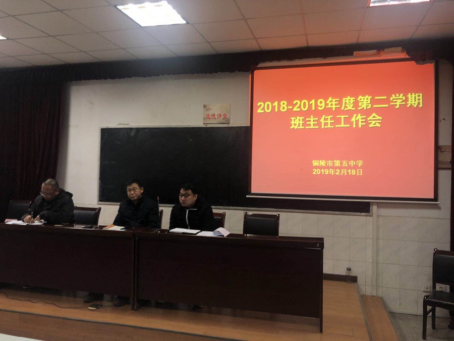 新學(xué)期還沒(méi)開(kāi)始,我校領(lǐng)導(dǎo)和全體班主任在階梯教室進(jìn)行班級(jí)任務(wù)布置。