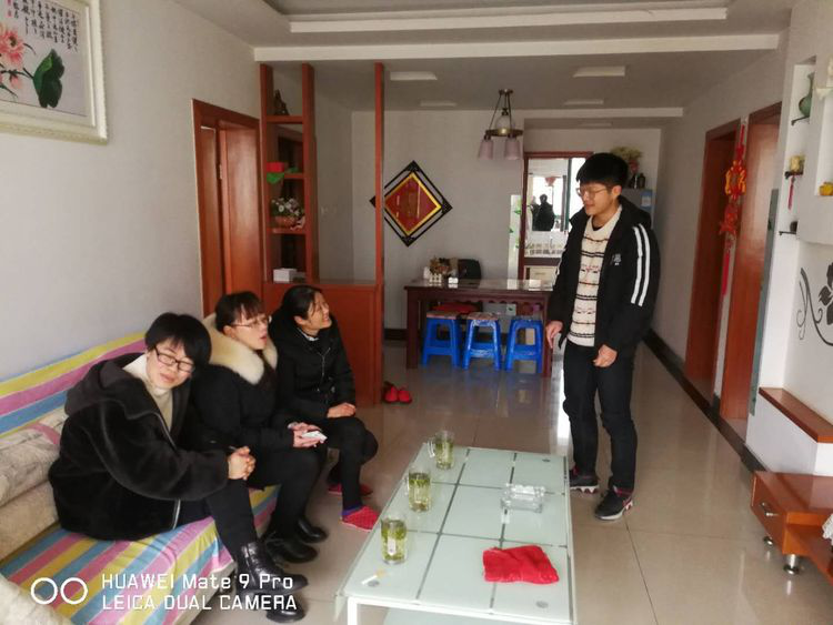 高彪和蔣靈慧來到高105班徐儉同學(xué)家里,與家長溝通孩子在家和在學(xué)校的表現(xiàn),針對期末考試的成績做了分析和建議,家長和老師都對孩子提出了希望和要求。