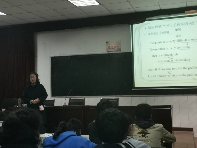 在一個半小時的講座中,章老師從巧用高中課本高級詞匯代替初中基礎(chǔ)詞匯、巧妙擴充寫作內(nèi)容等方面,循序漸進地啟發(fā)學(xué)生提升英語寫作水平。章老師的講解大氣幽默、深入淺出,在座的學(xué)生聽完講座后表示深受啟發(fā)。此次講座對很多對英語寫作抱有懼怕心理的西藏生而言是一場及時雨,能有效幫助他們提升英語寫作水平,提高學(xué)習(xí)英語的信心和積極性。
