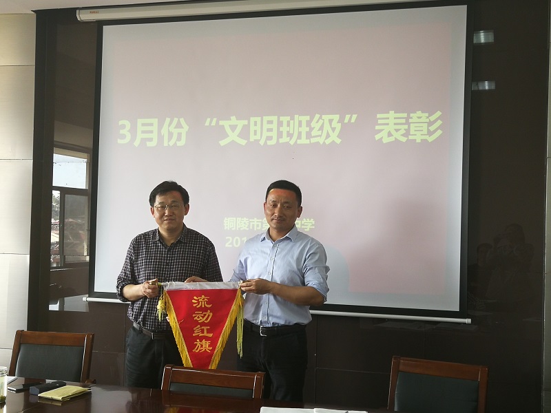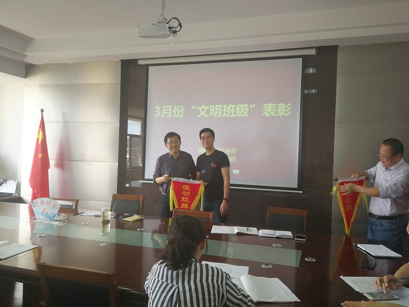 首先 由沐校長(zhǎng)和瞿主席對(duì)上個(gè)月的文明班級(jí)進(jìn)行表彰,并頒發(fā)流動(dòng)紅旗。