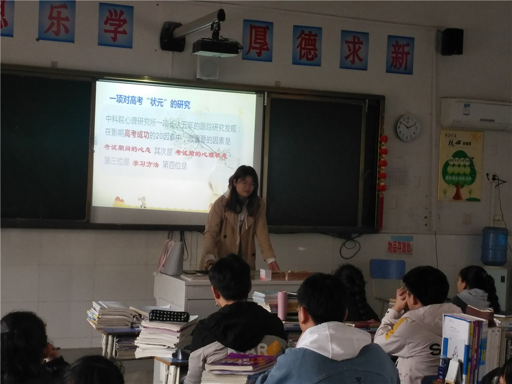 四位老師分班級(jí)舉行考前心理健康講座,講座內(nèi)容生動(dòng),案例豐富。