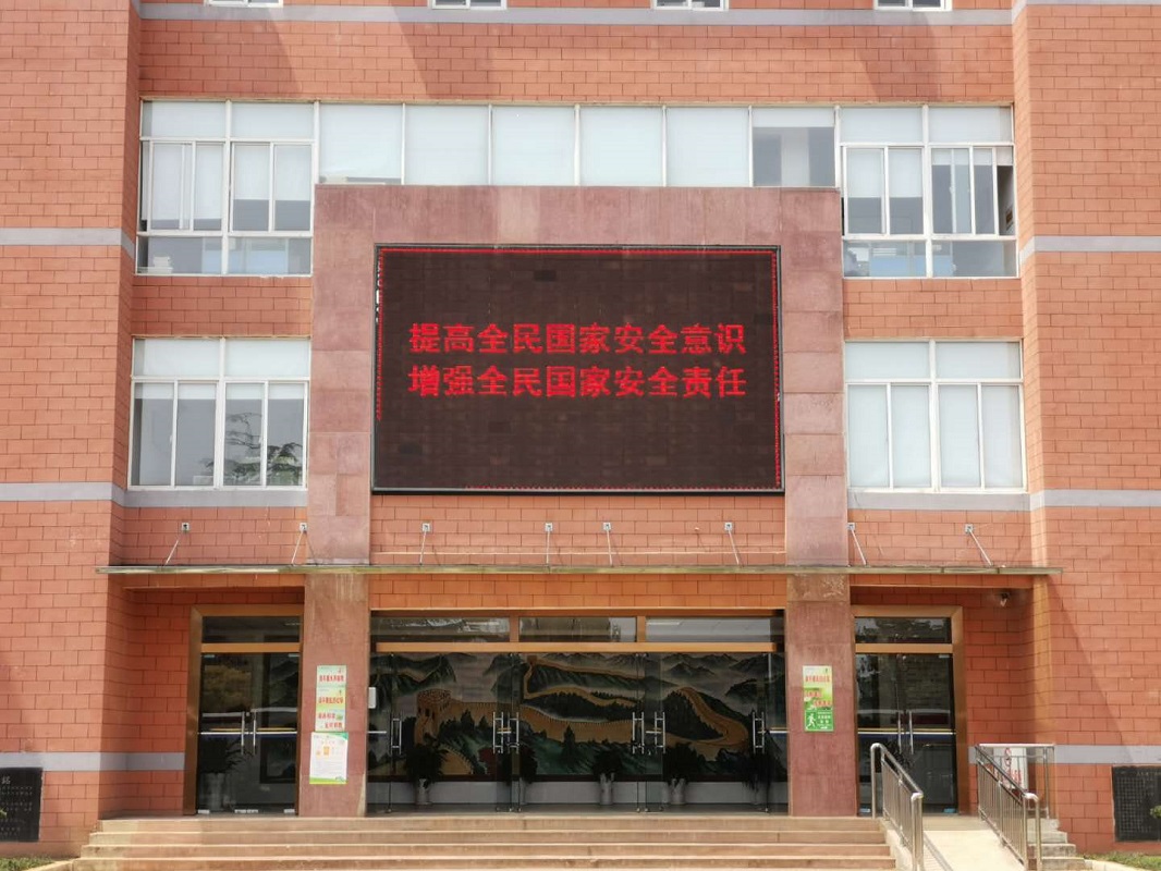 營造氛圍,通過校園內(nèi)懸掛宣傳條幅、電子顯示屏、宣傳欄和國旗下講話等途徑向廣大師生宣傳國家安全相關(guān)知識。