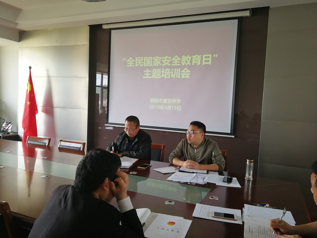 主題培訓(xùn)會,班主任隊伍是學(xué)生教育最直接的負(fù)責(zé)人,提高班主任隊伍的國家安全意識,尤其重要。4月15日下午第二節(jié)課,學(xué)校召開了“全民國家安全教育日”班主任培訓(xùn)會。4月16日上午第二節(jié)召開了學(xué)校安保人員培訓(xùn)會。
