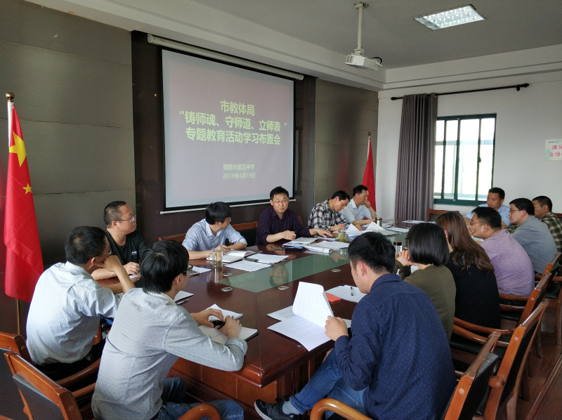 為深入貫徹《中共中央 國務(wù)院關(guān)于全面深化新時(shí)代教師隊(duì)伍建設(shè)改革的意見》及省、市實(shí)施意見,切實(shí)加強(qiáng)新時(shí)代教師師德師風(fēng)建設(shè),全面提升我校教師思想政治素質(zhì)和職業(yè)道德水平,根據(jù)銅教體黨〔2019〕13號(hào)文件精神,4月19日,我校召開“鑄師魂、守師道、立師表”專題教育活動(dòng)學(xué)習(xí)布置會(huì)。