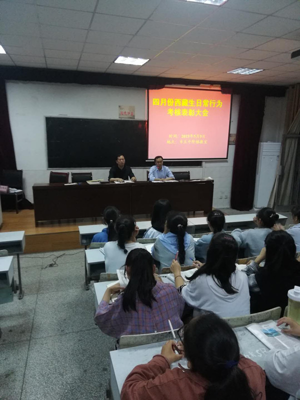 5月10日晚,我校在階梯教室召開西藏生四月份日常行為考核總結(jié)表彰大會。