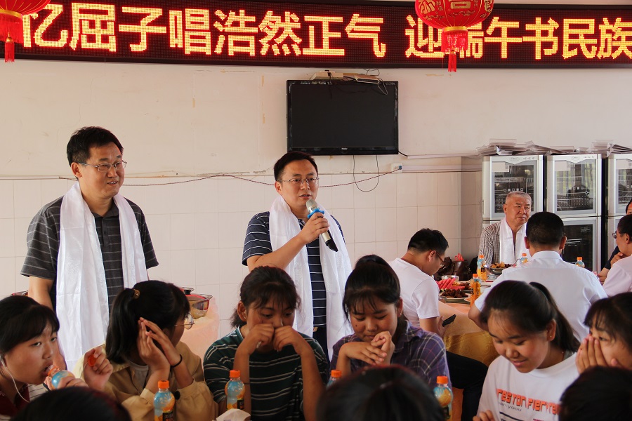 6月7日,端午佳節(jié)。市教體局徐磊局長蒞臨我校,同我校高一、高二西藏生歡度端午佳節(jié)。徐局長的到來受到了孩子們的熱烈歡迎,潔白的哈達,親切的問候,現(xiàn)場一片溫馨的場景。