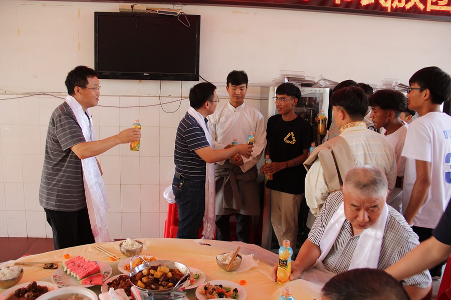 徐局長提到,五中的藏生雖遠離家鄉(xiāng),但是現(xiàn)在銅陵就是他們的家,五中更是他們的家,他祝五中全體師生節(jié)日快樂,孩子們學業(yè)有成。全體師生共同舉起手中的飲料,感謝領(lǐng)導的到來。