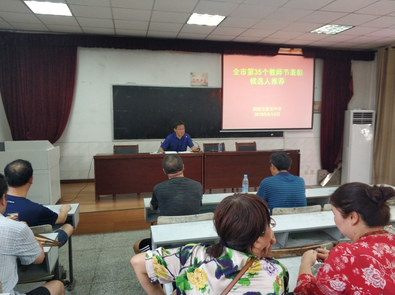 8月5日上午,召開全體教職工大會,經(jīng)過全體教職工無記名投票,在初步候選人當(dāng)中產(chǎn)生“名教師”、“名班主任”、“銅都青年英才教師”候選人各1人,經(jīng)支委會研究,最后確定推薦名單并在校內(nèi)公示。