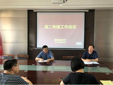 新學期伊始,為了對本學期工作統(tǒng)籌安排,貫徹落實級部制管理制度,2019年9月9日下午第四節(jié)課,我校高二年級部和年級組委員會在校綜合樓四樓會議室召開新學期工作會議。會議由年級部部長呂建國副校長主持,年級部吳成兵主任、張勝利主任和年級組委員會六位班主任老師參加會議,會議特別邀請沐楊校長蒞臨指導工作。